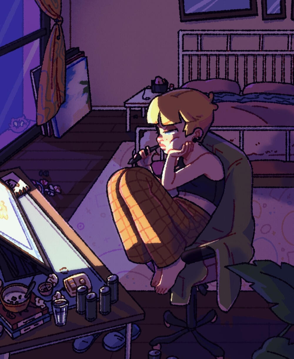 | Dhurata graduated from MICA in 2018 and has since worked with a wide variety of clients and projects, including "I'm Winning" by The Doubleclicks animated music video, flats for "Twins" by Shannon Wright, Fatventure Mag Vol 2, and Sonder with Stefani Vlusha. Dhurata is available for studio, freelance, and commission work. |